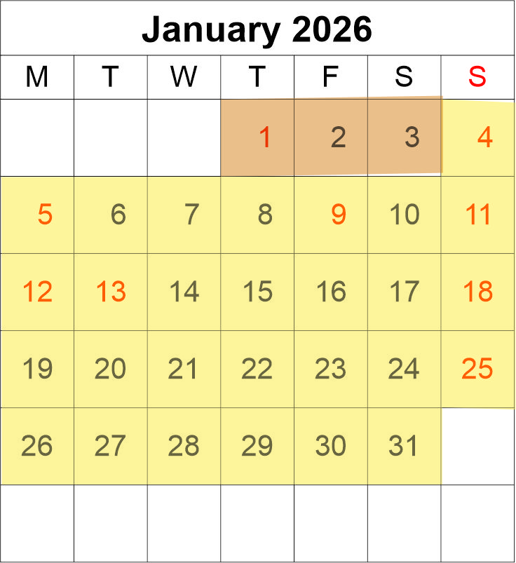 A weekend includes either a Friday or Saturday Night - we don't include Sunday night as the weekend.