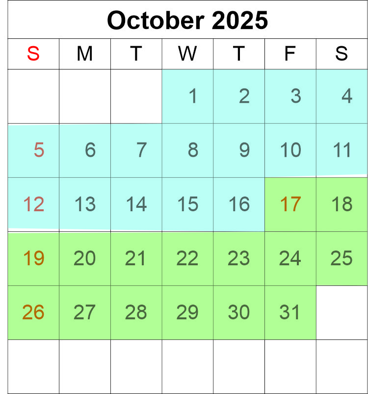 How Much? Just Match the Colour on the Calender below, with the grids here