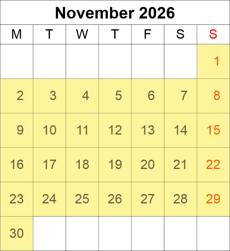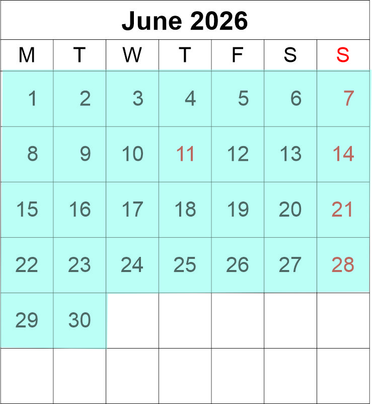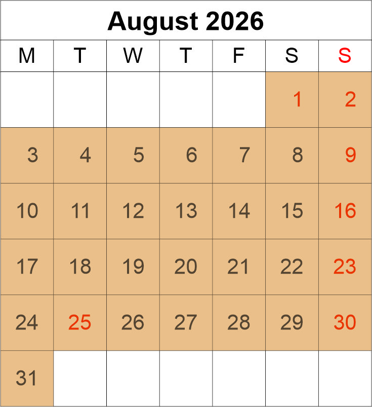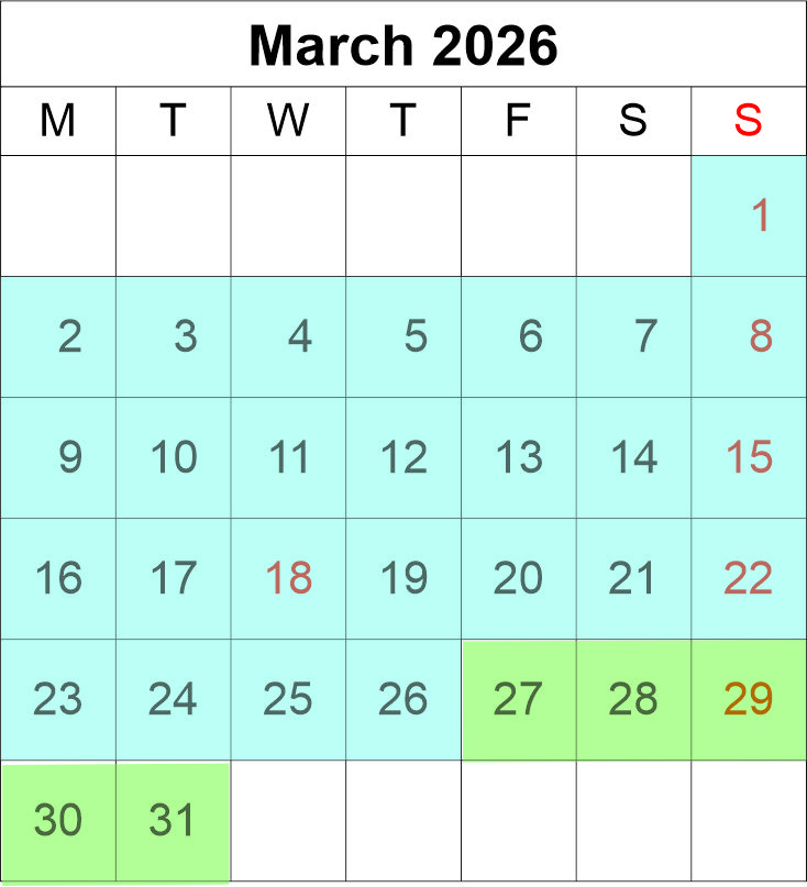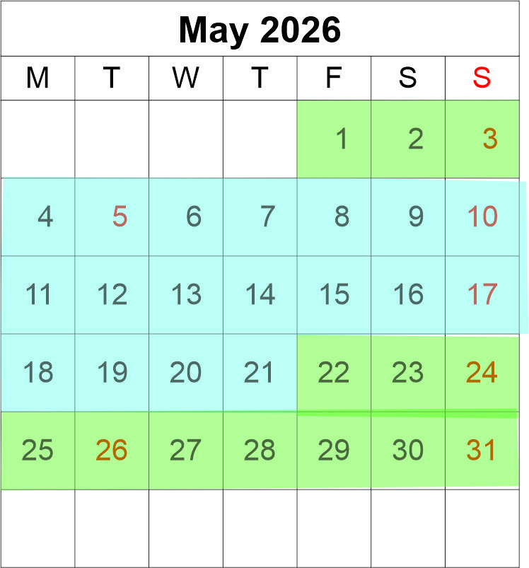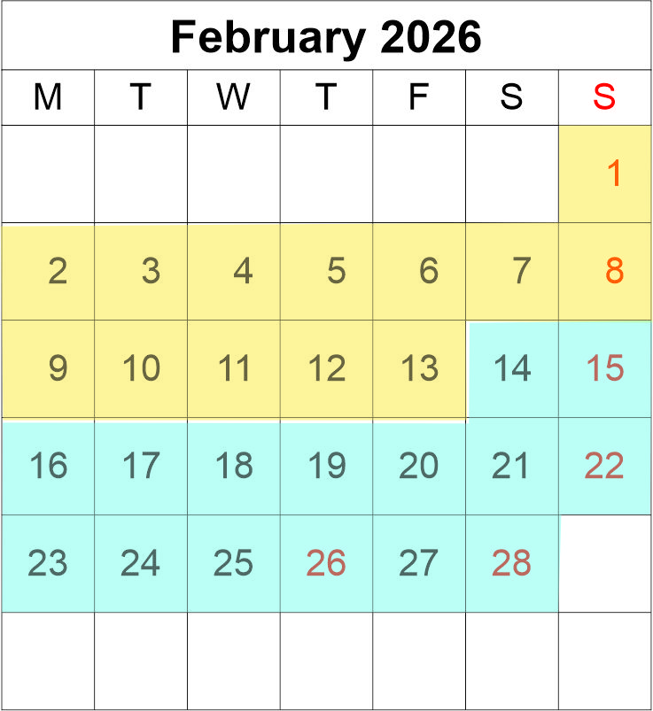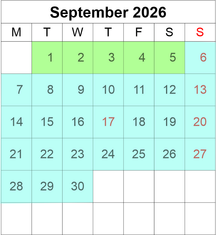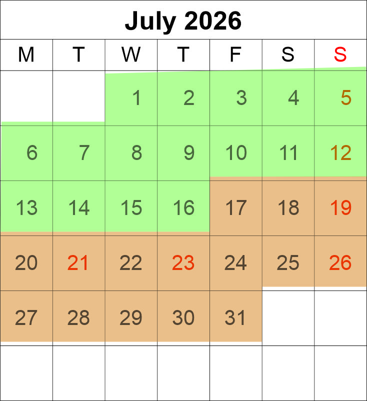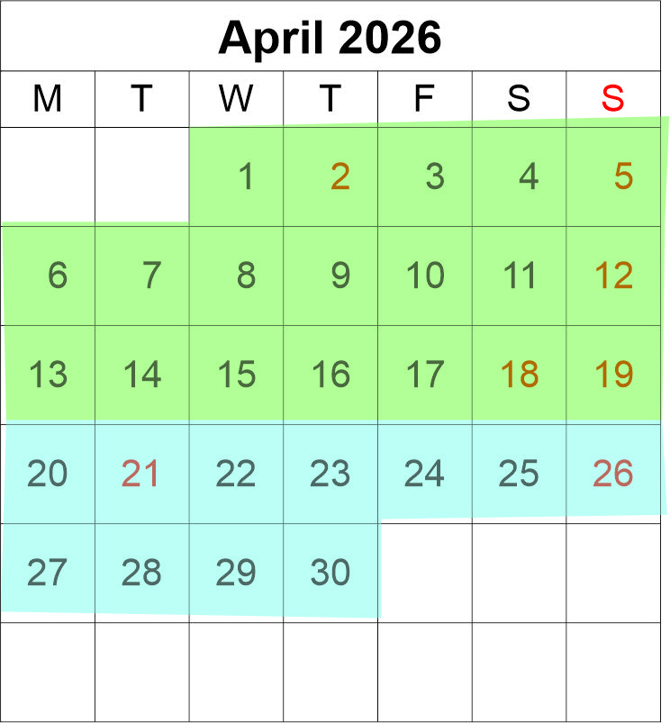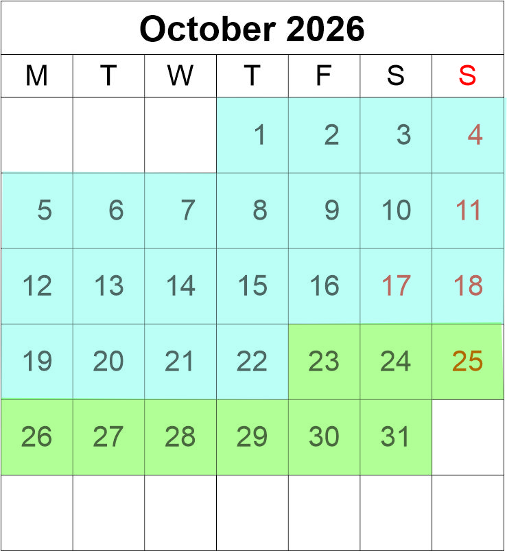 Match the coloured dates with your size of lodge